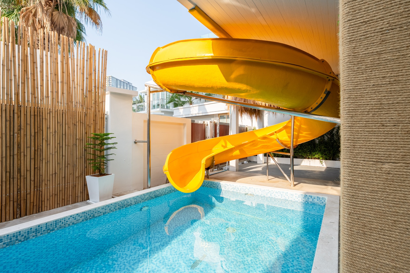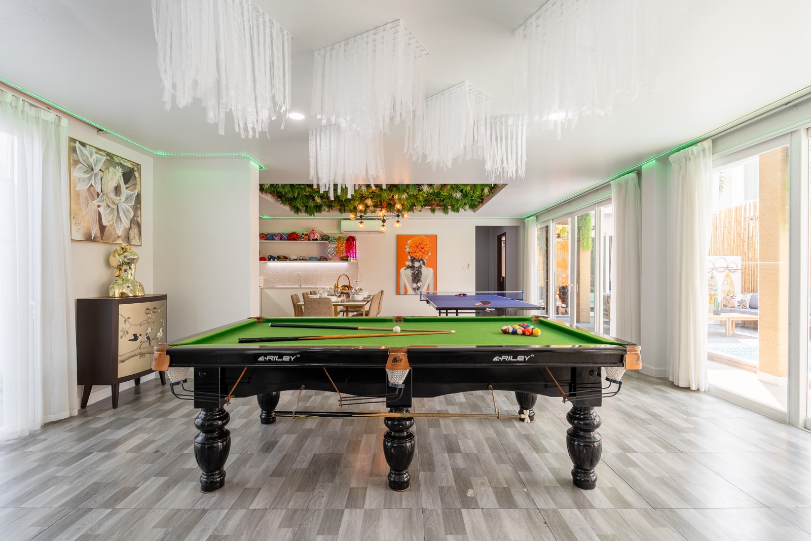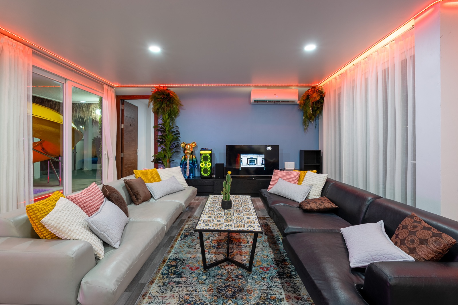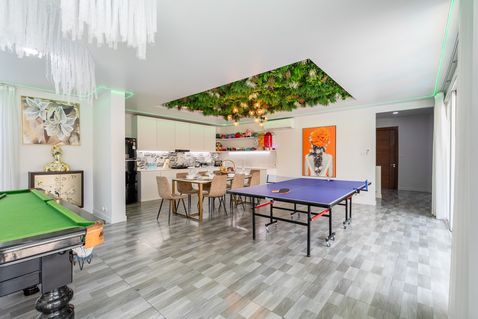 CLUB House Pool Villa Pattaya - This beautifully designed holiday villa spans 2 storeys and offers guests a luxurious and private retreat, complete with its own swimming pool and waterslide. The outdoor living and dining areas are spacious, shaded, and elegantly furnished, creating the perfect setting for relaxing by the pool or enjoying time together in comfort. The villa features 7 stylish bedrooms, 6 of which have en-suite bathrooms, plus, there is an additional guest toilet for convenience. All rooms are furnished in a contemporary style with a modern, relaxed holiday atmosphere. The villa comfortably accommodates large groups and families, making it ideal for both leisure and special occasions. The ground floor boasts a bright open-plan living area with dining space and a modern fully equipped kitchen, perfect for guests who enjoy self-catering. The villa is very well equipped with LCD TV, full air-conditioning throughout, and high-speed Wi-Fi. Furnishings and décor are modern, elegant, and comfortable, designed to provide a true home-away-from-home experience. For entertainment, guests can enjoy the pool table for private games, as well as a karaoke sound box for fun evenings together. For your peace of mind, the villa is fitted with a safety box and benefits from additional security at the main gate. Your reservation rate includes electricity and water usage, Wi-Fi, safety box, and the service of a private villa manager to assist you during your stay. Fresh towels, bed linen, toiletries, and drinking water are provided upon arrival. These items can be replenished or changed for an additional charge — please ask for details. For long-term rental inquiries, please contact our team for special rates. We will be happy to offer you our best price. Welcome to Villa By Owner in Pattaya — where comfort, privacy, and luxury meet.