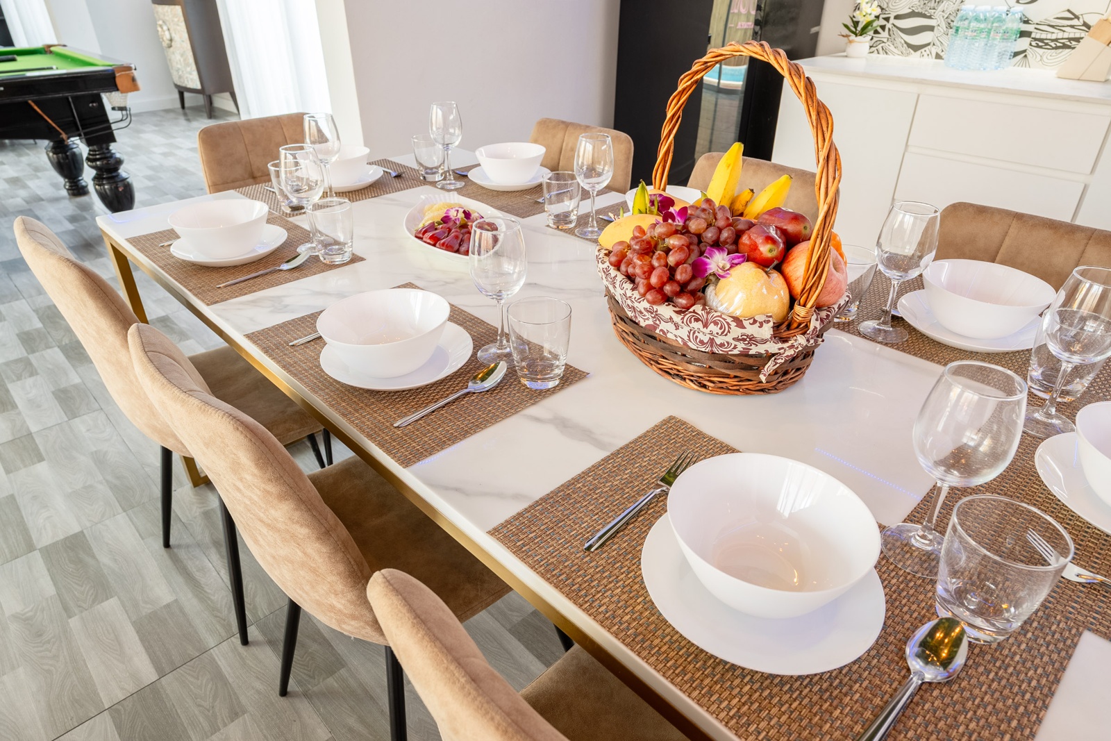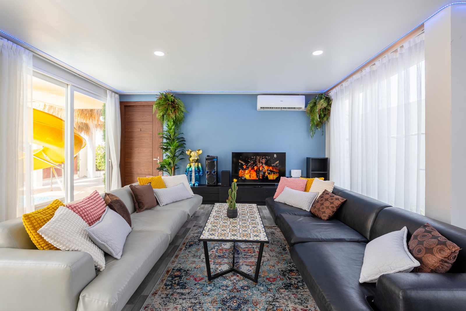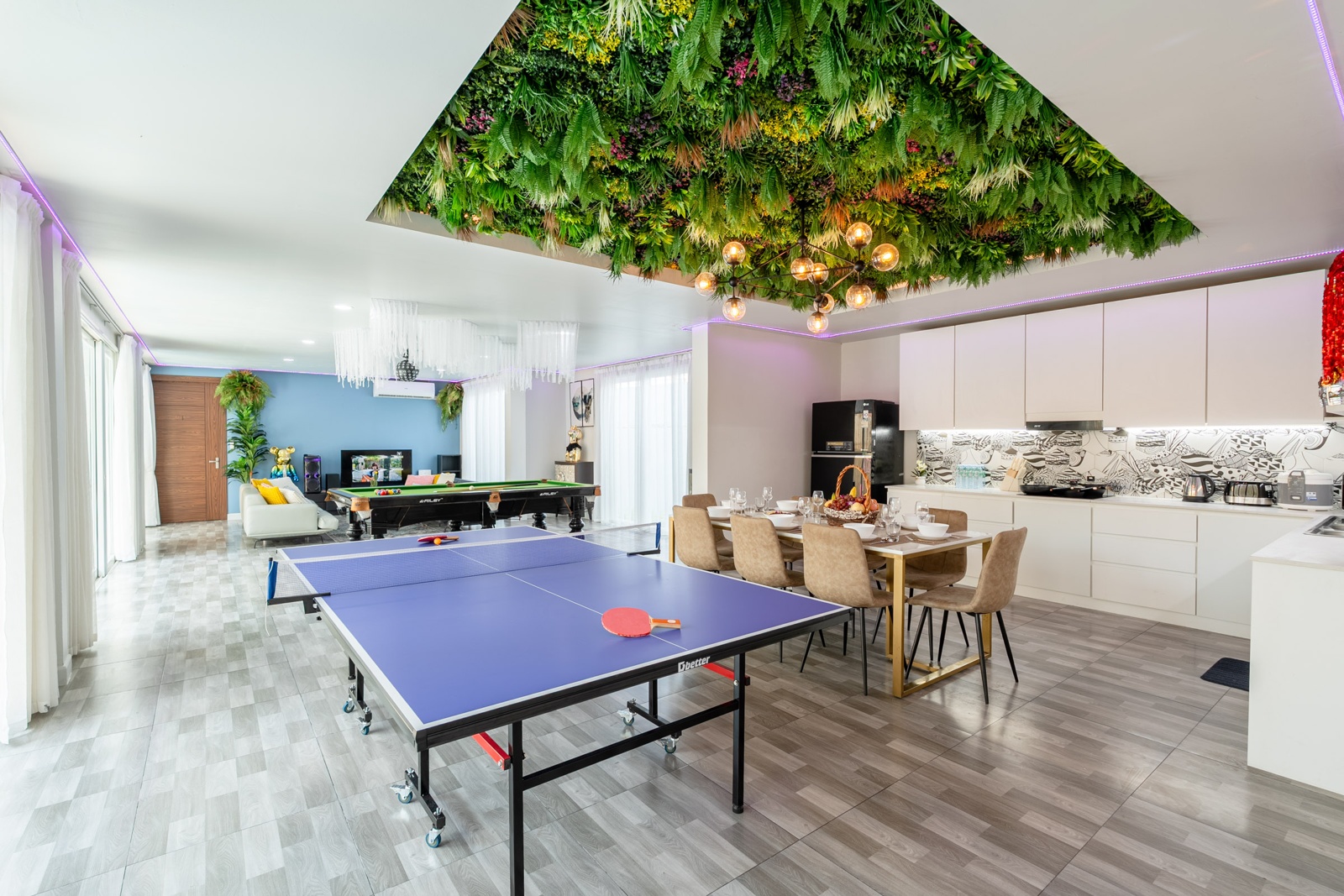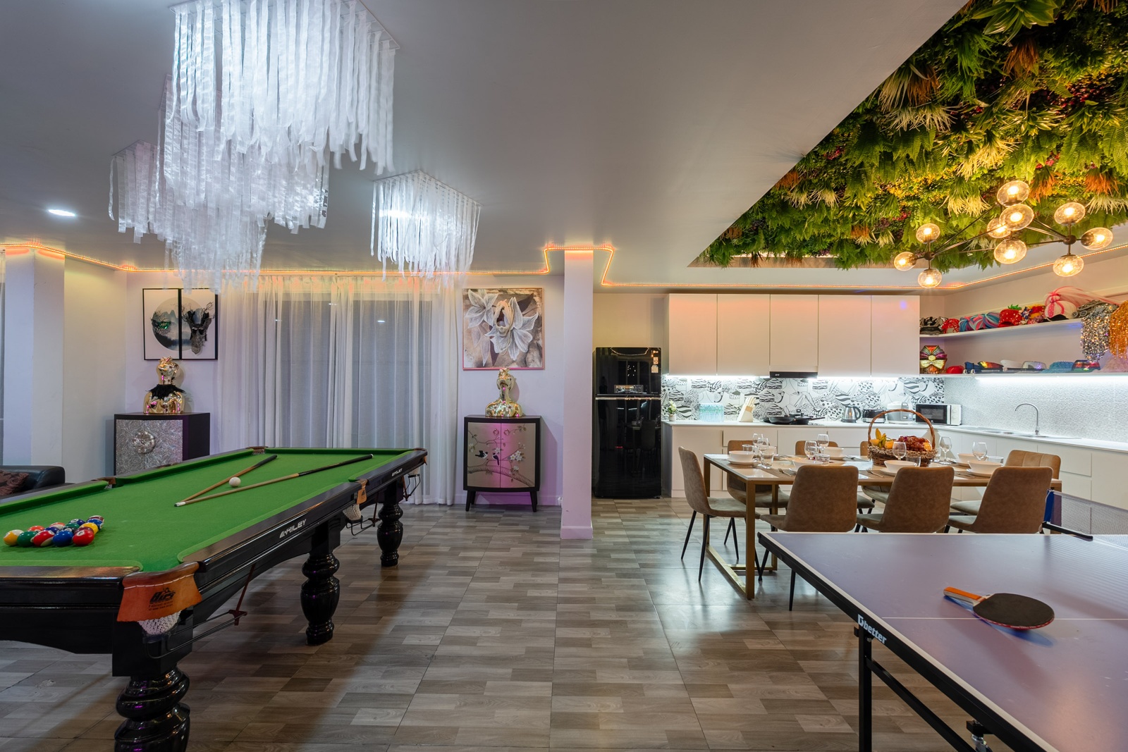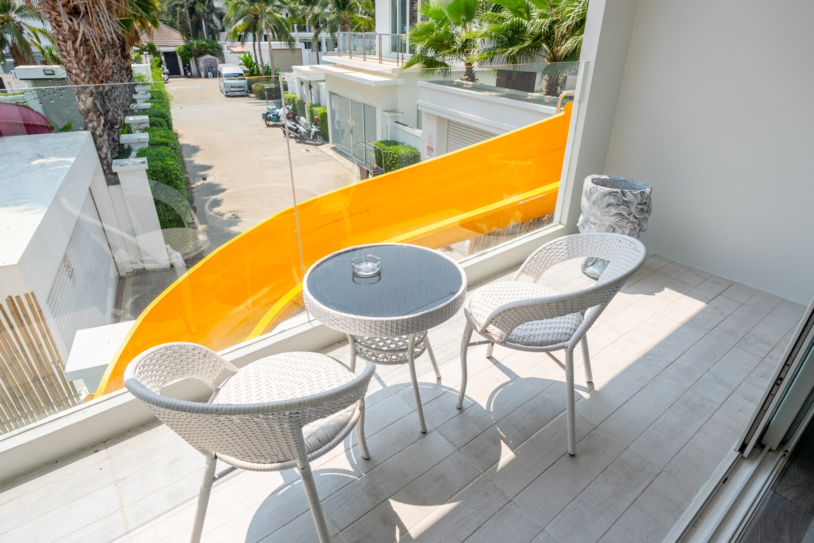 CLUB House Pool Villa Pattaya - This beautifully designed holiday villa spans 2 storeys and offers guests a luxurious and private retreat, complete with its own swimming pool and waterslide. The outdoor living and dining areas are spacious, shaded, and elegantly furnished, creating the perfect setting for relaxing by the pool or enjoying time together in comfort. The villa features 7 stylish bedrooms, 6 of which have en-suite bathrooms, plus, there is an additional guest toilet for convenience. All rooms are furnished in a contemporary style with a modern, relaxed holiday atmosphere. The villa comfortably accommodates large groups and families, making it ideal for both leisure and special occasions. The ground floor boasts a bright open-plan living area with dining space and a modern fully equipped kitchen, perfect for guests who enjoy self-catering. The villa is very well equipped with LCD TV, full air-conditioning throughout, and high-speed Wi-Fi. Furnishings and décor are modern, elegant, and comfortable, designed to provide a true home-away-from-home experience. For entertainment, guests can enjoy the pool table for private games, as well as a karaoke sound box for fun evenings together. For your peace of mind, the villa is fitted with a safety box and benefits from additional security at the main gate. Your reservation rate includes electricity and water usage, Wi-Fi, safety box, and the service of a private villa manager to assist you during your stay. Fresh towels, bed linen, toiletries, and drinking water are provided upon arrival. These items can be replenished or changed for an additional charge — please ask for details. For long-term rental inquiries, please contact our team for special rates. We will be happy to offer you our best price. Welcome to Villa By Owner in Pattaya — where comfort, privacy, and luxury meet.